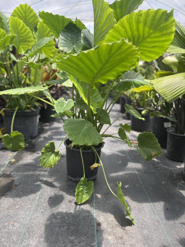 Alocasia (Alocasia spp.), commonly known as elephant ear or African mask plant, is a striking tropical plant celebrated for its dramatic foliage. Its large, heart- or arrow-shaped leaves, often with prominent veins, come in a variety of colors, including deep green, silver, and purple hues. This versatile plant adds an exotic feel to landscapes or as a statement piece in containers, thriving in warm and humid environments.
