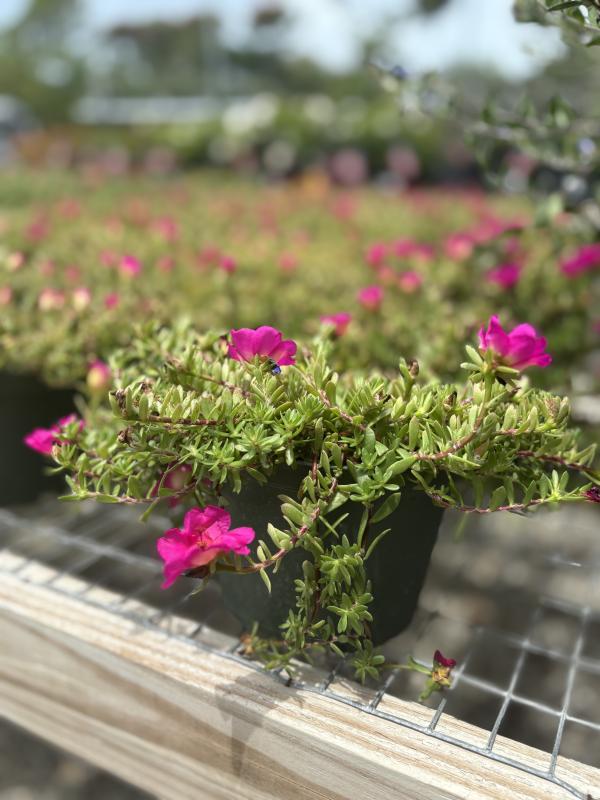 Portulaca (Portulaca spp.), commonly known as moss rose or purslane, is a low-growing, drought-tolerant plant prized for its vibrant, cup-shaped flowers and succulent foliage. Its blooms come in a variety of colors, including pink, red, yellow, orange, and white, opening during the day and closing in the evening. Portulaca thrives in hot, dry conditions, making it an excellent choice for rock gardens, borders, ground cover, or container plantings. It requires minimal maintenance and flourishes in well-drained soil with plenty of sunlight.