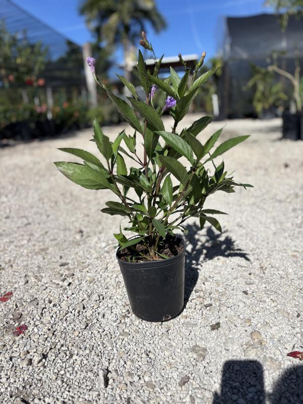 Mexican Petunia (Ruellia simplex) is a hardy, fast-growing perennial known for its trumpet-shaped purple, pink, or white flowers and slender, dark green leaves. It spreads easily and adds a tropical feel to landscapes. Often used in borders or mass plantings, it thrives in both wet and dry conditions once established.