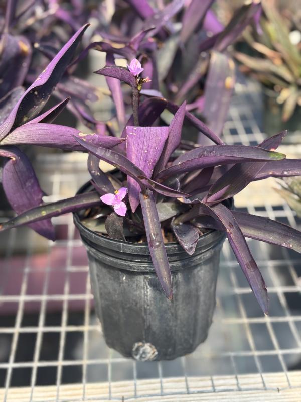 Purple Queen (Tradescantia pallida) is an evergreen perennial known for its striking, deep purple foliage and small, delicate pink flowers. This plant is perfect for adding vibrant color to gardens, borders, and containers. It has a trailing growth habit, making it an excellent ground cover or accent plant in hanging baskets. Purple Queen thrives in a variety of conditions and is particularly valued for its drought tolerance.