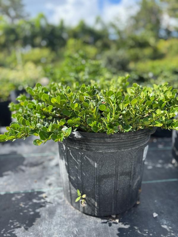 Emerald Blanket Carissa(Carissa macrocarpa'Emerald Blanket') is a low-growing, compact shrub known for its dense, glossy green foliage and fragrant white flowers. It is commonly used as ground cover or in hedging, adding a neat, colorful look to the landscape. This variety is highly tolerant of heat, drought, and salt, making it an excellent choice for Florida’s coastal environments.