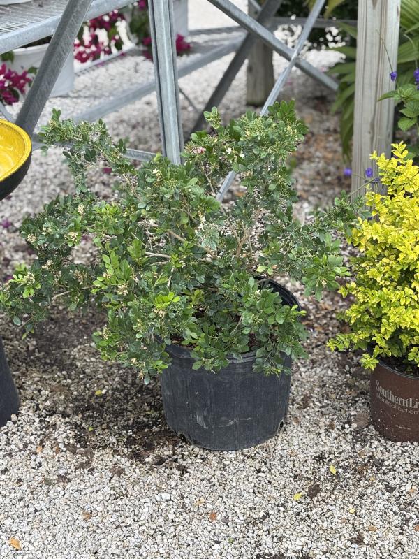 Jasmine 'Lakeview' (Jasminum nitidum'Lakeview') is a vigorous, twining vine or sprawling shrub known for its glossy green foliage and star-shaped, fragrant white flowers. It blooms profusely throughout the warmer months and is ideal for trellises, fences, or as a cascading accent in containers.