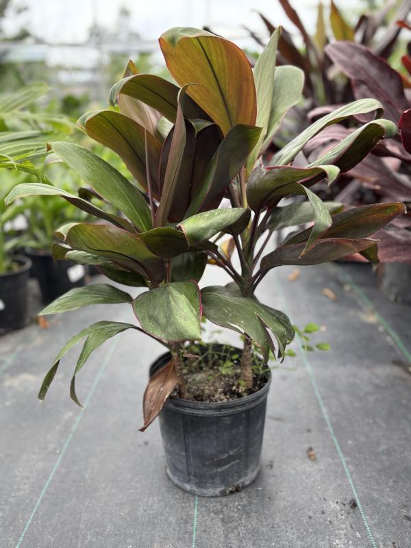 Ti Plant 'Bolero' (Cordyline fruticosa 'Bolero') is a vibrant, tropical plant known for its striking, variegated leaves that range in colors from deep green to shades of red, pink, and purple. This variety of Ti Plant adds bold color and texture to Florida landscapes, thriving in containers, garden beds, or as a focal point in tropical garden designs.
