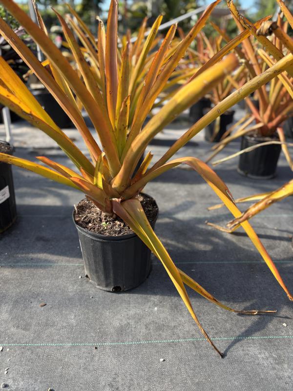 Aechmea (Aechmea spp.), often grown in Florida landscapes, is a stunning tropical bromeliad recognized for its bold, vase-shaped rosette of stiff, toothed leaves and long-lasting colorful flower spikes. Thriving in warm, humid climates, it makes a striking focal point in shaded garden beds, containers, or mounted on trees.