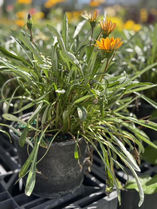 Gazania Big Kiss (Gazania rigens) is a low-growing, drought-tolerant perennial known for its large, daisy-like flowers in bright shades of yellow, orange, and pink. It thrives in sandy, well-drained soils and is an excellent choice for ground cover or container planting, providing vibrant color throughout the warmer months.