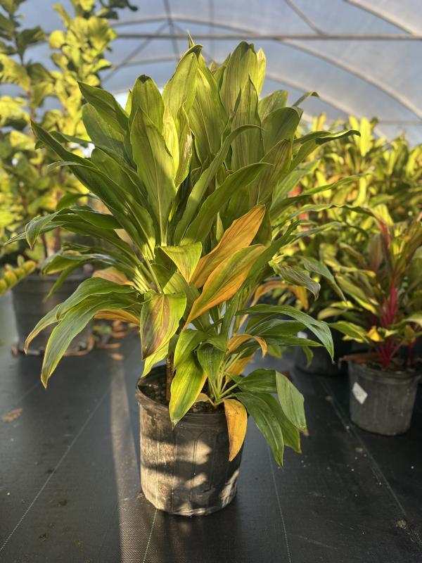 Ti Plant 'Sherbert' (Cordyline fruticosa 'Sherbert') is a vibrant tropical plant known for its striking foliage, which features a mix of soft pink, cream, and green tones. This variety of Ti Plant adds a colorful, tropical flair to Florida landscapes, thriving in containers, garden beds, or as an accent plant in shaded areas.