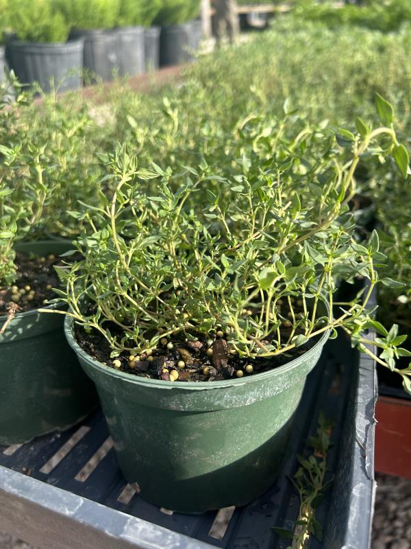 Thyme 'French' (Thymus vulgaris 'French') is a classic culinary herb prized for its rich, savory flavor and fine-textured, aromatic foliage. It grows as a small, bushy perennial that performs well in containers, herb gardens, and sunny borders, adding both beauty and utility to the landscape. Thyme 'French' thrives in Florida’s warm, subtropical climate when given well-drained soil and plenty of sun, providing year-round fragrance and fresh herbs for cooking.