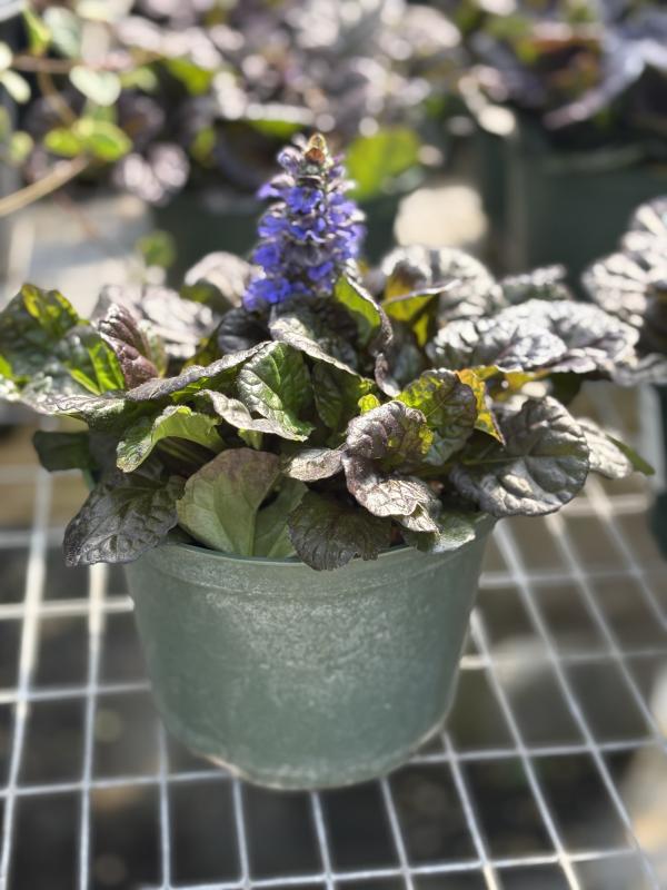 Ajuga (Ajuga reptans) is a low-growing, evergreen perennial commonly used as ground cover for its fast-spreading nature and vibrant foliage. It features glossy green leaves, often with purple or bronze hues, and in spring, it produces spikes of small, tubular violet flowers that attract pollinators. This plant thrives in shaded or partially sunny areas and is perfect for filling in between other plants or covering the soil.