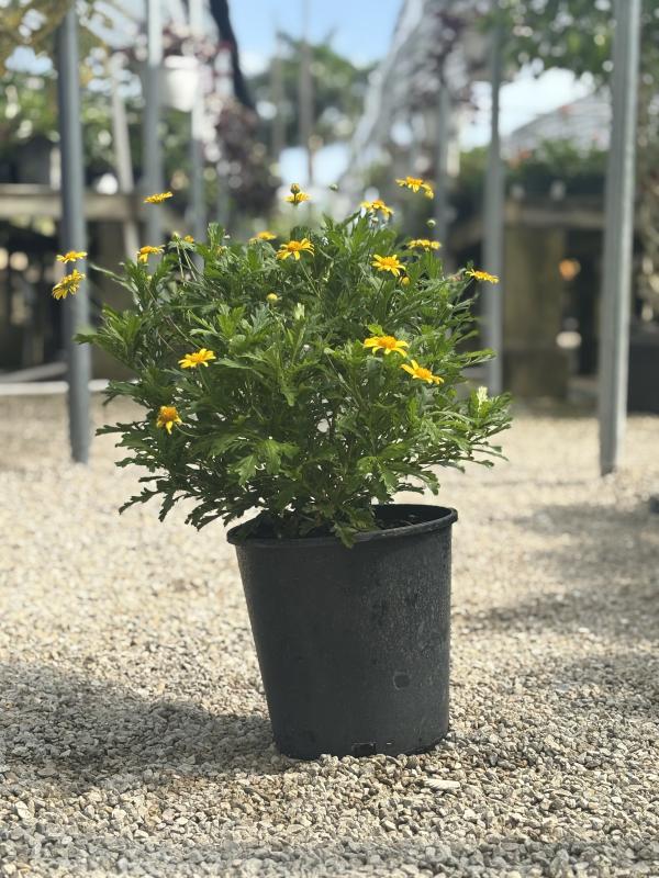 Bush Daisy (Osteospermum spp.) is a hardy, bushy perennial known for its daisy-like flowers that bloom in vibrant colors, such as purple, pink, white, or yellow. This versatile plant thrives in Florida's sunny climate, making it a popular choice for borders, containers, and garden beds. The bush daisy's bright blooms attract pollinators, and its compact growth makes it an excellent addition to both formal and informal gardens.