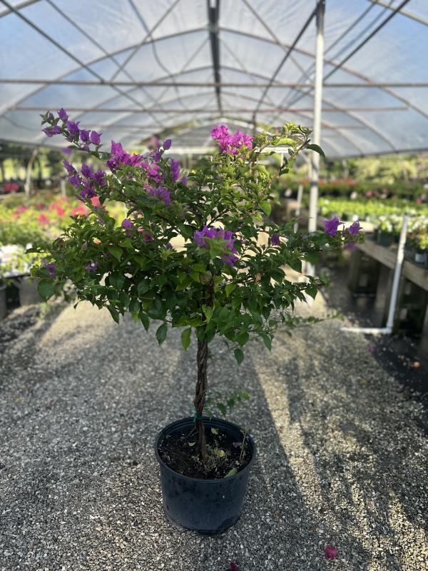 The New River Bougainvillea is a hardy, fast-growing shrub known for its vibrant, colorful bracts that come in shades of purple. It's often used for landscaping in warm climates due to its drought tolerance and ability to thrive in full sun. It works well as a specimen plant, in containers, or along fences and trellises.