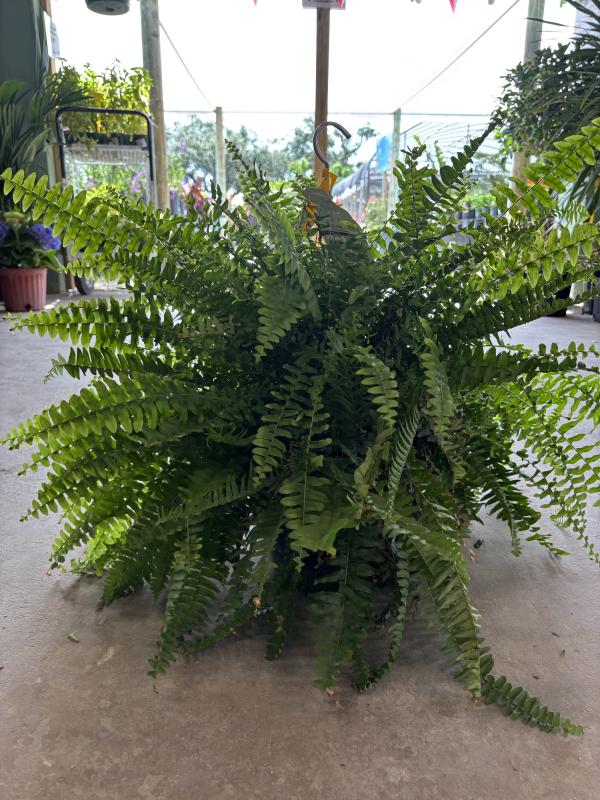 Boston Fern (Nephrolepis exaltata) is a lush, evergreen fern known for its feathery, arching fronds that create a soft, natural look. It thrives in humid, shaded environments and is often used as a decorative plant in hanging baskets or as an indoor houseplant. With its graceful foliage, the Boston Fern adds a touch of greenery and air-purifying benefits to any space, whether inside or in shaded outdoor areas.