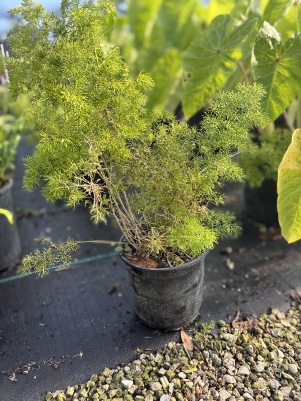 Ming Fern (Asparagus macowanii) is an elegant, evergreen ornamental plant known for its fine, feathery foliage that creates a soft, cloud-like appearance. Often used in floral arrangements or as an accent plant, its delicate yet sturdy growth habit adds a touch of refinement to gardens or indoor settings. This drought-tolerant plant thrives in well-drained soil and is a low-maintenance choice for shaded to sunny areas.