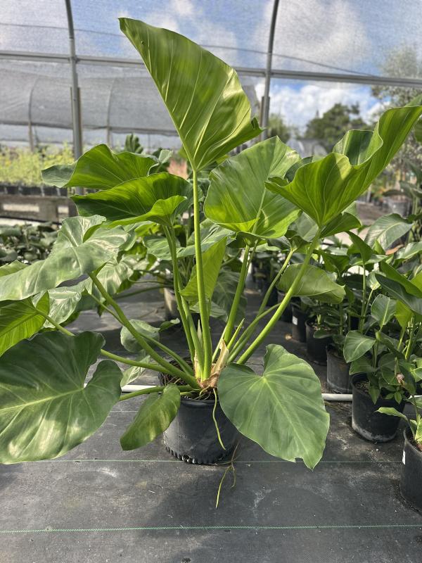 Philodendron Gigantea (Philodendron giganteum) is a striking tropical plant known for its massive, glossy green leaves that can reach up to 3 feet in length. This fast-growing variety creates a bold, jungle-like aesthetic, making it a standout feature in landscapes or large container gardens. It thrives in warm, humid environments and appreciates ample space to spread.
