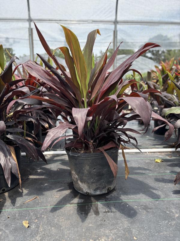 Black Magic Ti (Cordyline fruticosa 'Black Magic') is a striking tropical plant known for its deep burgundy to almost black leaves, which add dramatic color to any garden or landscape. Its bold foliage and upright growth habit make it a popular choice for adding contrast and texture in tropical or subtropical gardens.