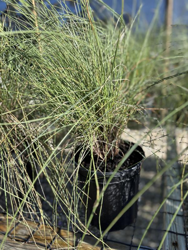 Muhly Grass (Muhlenbergia capillaris) is a native Florida ornamental grass known for its striking, cloud-like pink or purple flower plumes that appear in late summer to fall. This grass has fine-textured, airy foliage that creates a delicate, flowing appearance, making it an excellent choice for adding texture and movement to landscapes. Its ability to thrive in sandy, well-drained soils and its drought tolerance makes it a perfect option for Florida's variable climate, especially in xeriscape gardens or low-maintenance areas.