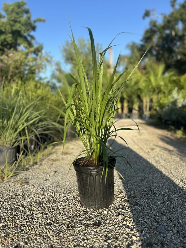 Fakahatchee Grass (Tripsacum dactyloides) is a native Florida grass known for its striking, tall, and graceful growth habit. It features lush, arching blades of green that turn golden yellow in the fall, providing an elegant look in landscapes. Fakahatchee Grass is commonly used in wetland areas, as it thrives in moist, well-drained soils and is highly tolerant of both heat and humidity, making it ideal for Florida’s climate.