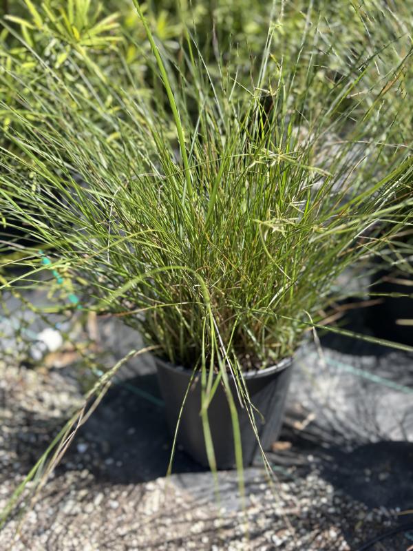 Sand Cordgrass (Spartina bakeri) is a tall, clumping grass with fine-textured, arching foliage that thrives in sandy and wetland environments. Its deep green leaves create a graceful, fountain-like appearance, making it a striking addition to natural landscapes. This grass is well-suited for erosion control, as it establishes strong root systems that help stabilize soil. It is drought-tolerant once established and can withstand occasional flooding, making it a resilient choice for a variety of settings.