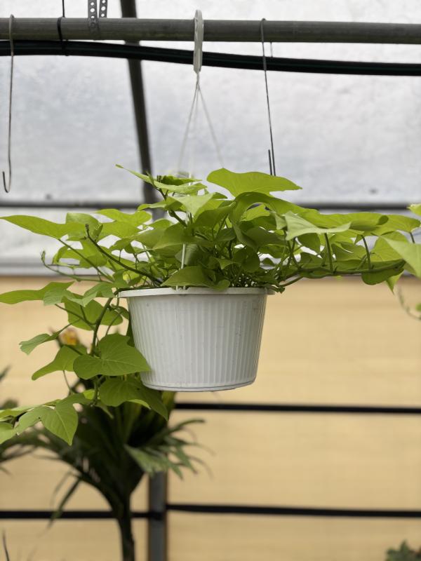Sweet Potato 'Green' (Ipomoea batatas) is a fast-growing vine commonly grown for its ornamental foliage rather than its edible tubers. This plant features heart-shaped, glossy green leaves and spreads rapidly, making it an excellent choice for ground cover or as a hanging plant. Sweet Potato 'Green' thrives in full sun to partial shade and requires regular watering to maintain its lush, vibrant foliage. It's known for its low-maintenance care and resilience, adding beauty to gardens, containers, and landscapes.