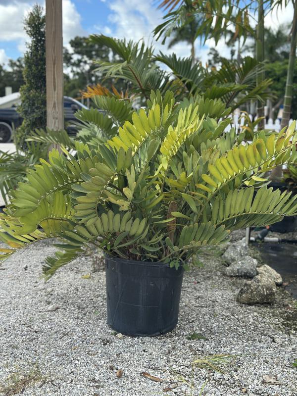 Cardboard Palm (Zamia furfuracea) is a rugged, slow-growing cycad known for its thick, leathery, and fuzzy green leaflets that resemble cardboard in texture. This low-maintenance plant adds a tropical, prehistoric look to landscapes and is well-suited for Florida’s climate. It’s not a true palm but is often used as a palm substitute in sunny or partially shaded areas.