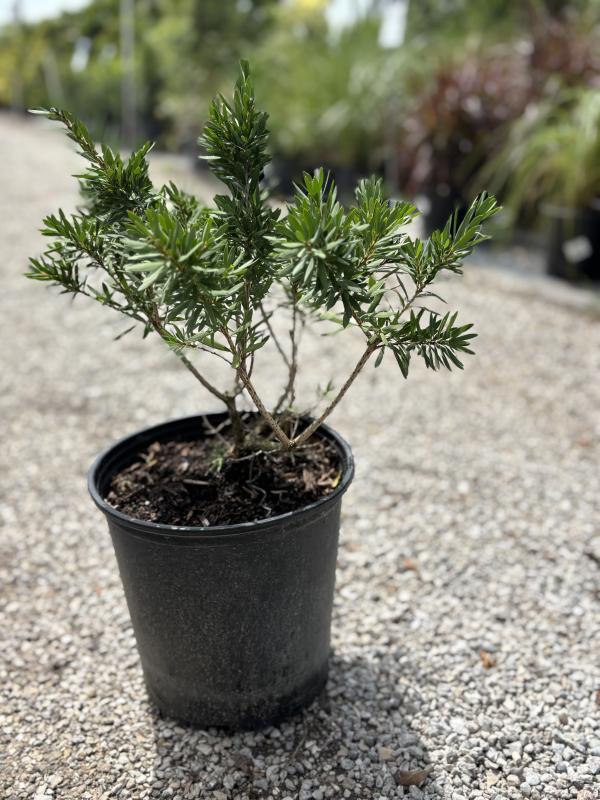 Dwarf Bottlebrush Little John (Callistemon viminalis 'Little John') is a compact, evergreen shrub known for its dense, bushy growth and striking, bright red, bottlebrush-like flowers. The flowers bloom profusely, attracting hummingbirds and butterflies. This versatile plant is ideal for small gardens, borders, and containers, providing year-round interest with its unique flowers and fine-textured foliage.
