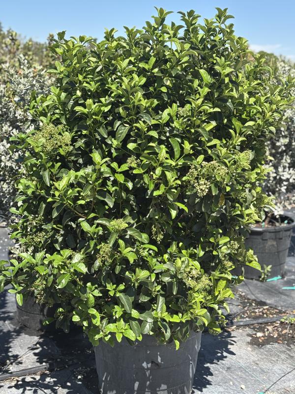 Sweet Viburnum (Viburnum odoratissimum) is a fast-growing, evergreen shrub that is highly valued for its dense, dark green foliage and its ability to create a lush, dense screen or hedge. It is commonly used in landscapes for privacy or as an attractive border plant. In addition to its appealing foliage, it is known for its glossy leaves and its resistance to drought once established.
