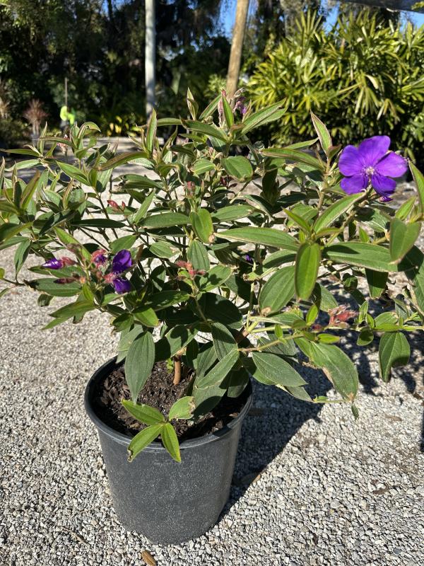 Tibouchina 'Athens Blue' (Tibouchina urvilleana 'Athens Blue') is a compact, vibrant shrub known for its profusion of rich, royal blue to deep purple flowers that bloom throughout the warmer months. Its velvety foliage and showy blossoms make it a striking addition to garden beds or container plantings, particularly in tropical and subtropical landscapes.