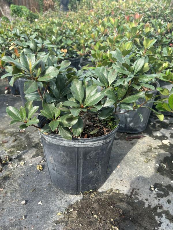 Dwarf Indian Hawthorne (Rhaphiolepis indica ‘Dwarf’) is a compact, evergreen shrub valued for its dense, rounded growth habit and glossy green leaves. In spring, it produces clusters of delicate pink or white flowers, attracting pollinators. This low-maintenance plant is ideal for borders, foundation plantings, and mass plantings in landscapes. It is drought-tolerant and resistant to pests and diseases.