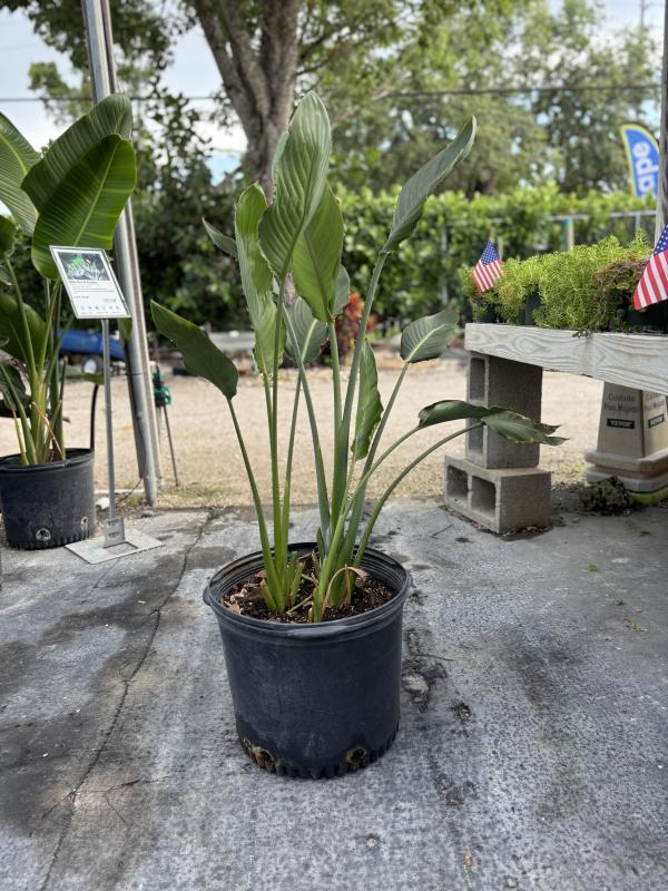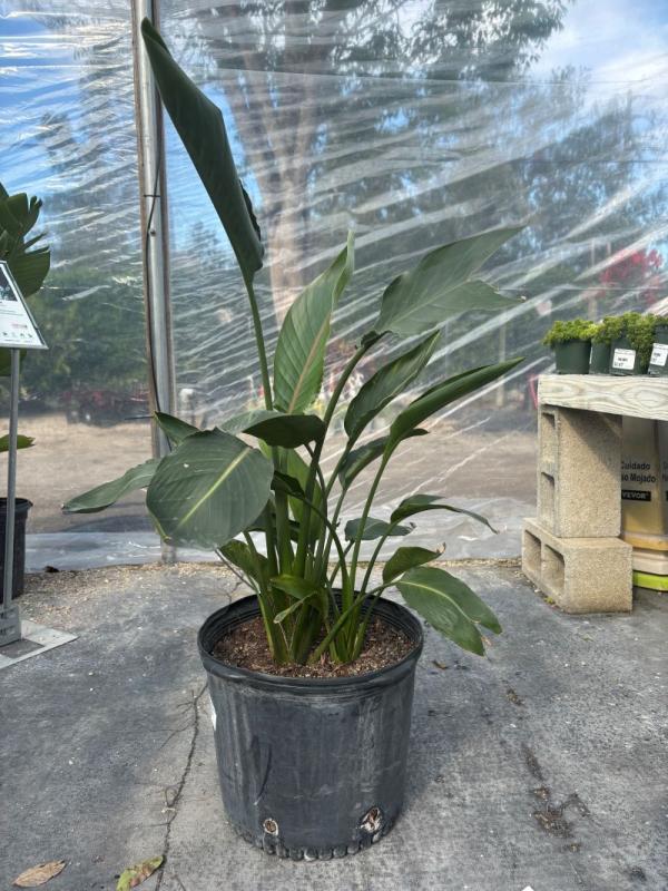 Orange Bird of Paradise (Strelitzia reginae) is a striking, tropical plant known for its large, banana-like leaves and vibrant, bird-shaped orange and blue flowers. It adds a dramatic flair to landscapes and is often used in both tropical and subtropical gardens, thriving in full sun to partial shade.