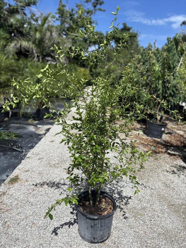 Barbados Cherry (Malpighia emarginata) is a small, tropical shrub or small tree known for its bright red, tart fruit that is packed with vitamin C. The fruit is often used in making juices, jams, or eaten fresh. Barbados Cherry thrives in Florida’s warm climate, making it an ideal addition to home gardens or edible landscapes.