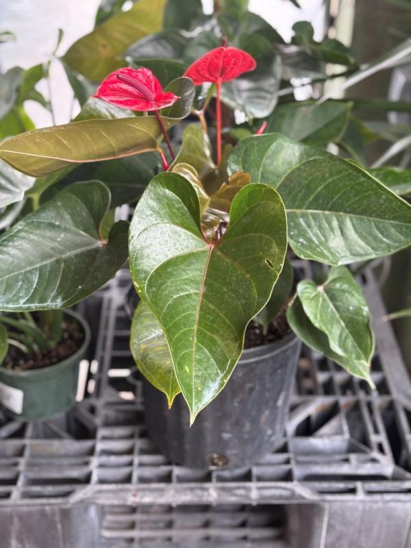 Anthurium (Anthurium andraeanum) is a popular tropical plant known for its glossy, heart-shaped leaves and striking spathes that come in various colors, including red, pink, and white. Often referred to as the "flamingo flower," it is commonly used as a decorative plant both indoors and outdoors in Florida’s tropical and subtropical climates.