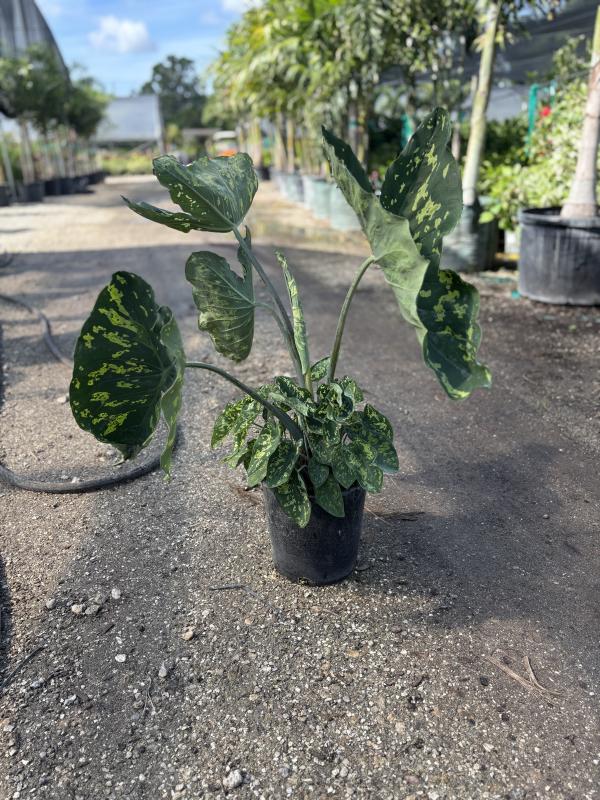 Alocasia (Alocasia spp.), commonly known as elephant ear or African mask plant, is a striking tropical plant celebrated for its dramatic foliage. Its large, heart- or arrow-shaped leaves, often with prominent veins, come in a variety of colors, including deep green, silver, and purple hues. This versatile plant adds an exotic feel to landscapes or as a statement piece in containers, thriving in warm and humid environments.