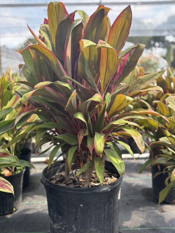 Florica Ti Plant (Cordyline fruticosa 'Florica') is a tropical plant known for its striking, variegated foliage featuring a mix of green, pink, and white hues. It has an upright growth habit and adds a bold splash of color to gardens, patios, or containers, making it a popular choice for tropical landscapes.