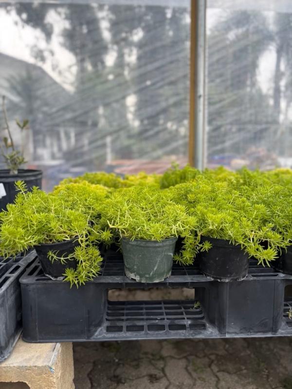Gold Sedum (often referred to as Sedum rupestre 'Angelina') is a low-growing, drought-tolerant succulent with bright golden-yellow foliage that turns orange to red in cooler weather. It’s a hardy, spreading plant used as ground cover, in rock gardens, or as an accent in containers, thriving in full sun and well-drained soil.