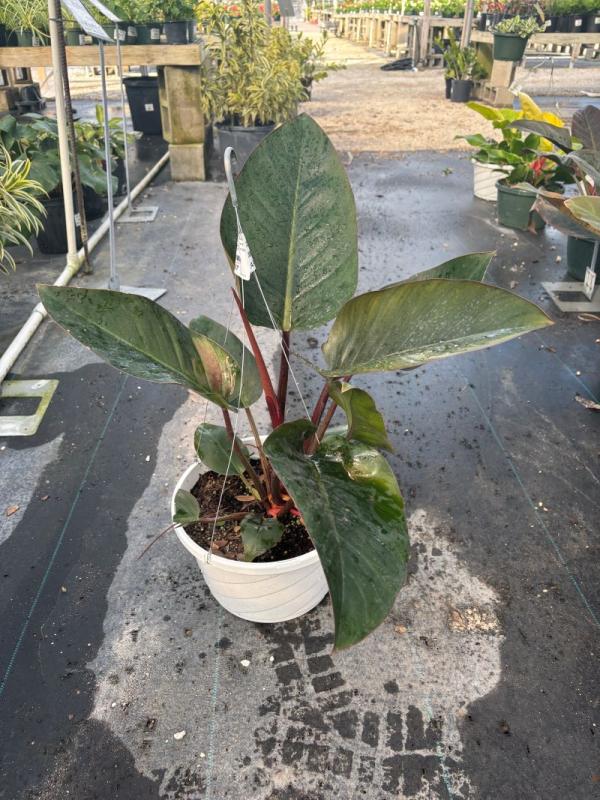 Philodendron Congo Red (Philodendron ‘Congo Red’) is a vibrant, self-heading philodendron with broad, glossy leaves that emerge red and mature into deep green with burgundy undertones. This low-maintenance tropical plant thrives in warm, humid conditions and is ideal for indoor or shaded outdoor spaces. It prefers well-draining soil and regular watering, allowing the soil to dry slightly between waterings.