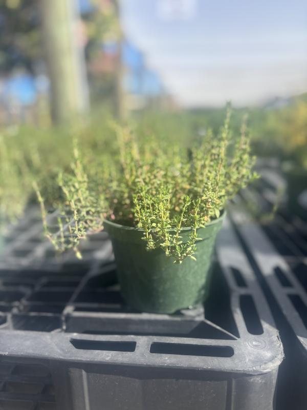 English Thyme (Thymus vulgaris) is a hardy, aromatic herb known for its small, gray-green leaves and strong, earthy flavor. It is commonly used in Mediterranean cuisine for seasoning meats, stews, soups, and sauces. English Thyme thrives in Florida’s warm, subtropical climate, and is a perfect herb for containers, herb gardens, or as a ground cover.