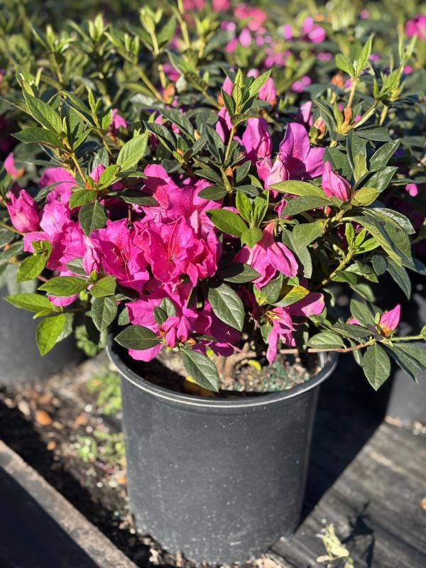 Azalea (Rhododendron spp.) is a popular flowering shrub known for its vibrant, funnel-shaped blooms that come in a wide range of colors including pink, red, white, and purple. With its lush foliage and seasonal floral displays, azalea is often used in borders, foundation plantings, or as a striking standalone specimen. It prefers acidic, well-drained soil and thrives in filtered light, making it ideal for partially shaded gardens in Florida.