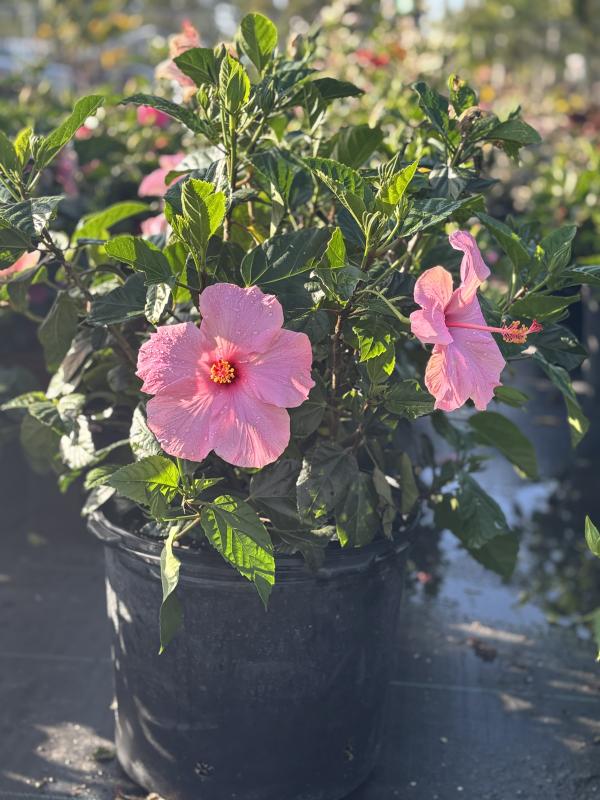 The Seminole Pink Hibiscusis a striking shrub known for its large, showy pink flowers with a deep red center, making it a standout in gardens and landscapes. This variety of hibiscus is well-suited for warm climates, producing blooms that attract butterflies and hummingbirds. It's a great choice for adding a tropical flair to yards, especially when planted as a specimen or in mixed borders.