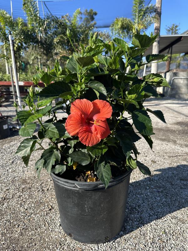 President Red Hibiscus (Hibiscus rosa-sinensis 'President') is a striking tropical shrub known for its large, vibrant red, trumpet-shaped flowers and glossy green foliage. This popular plant is perfect for adding a bold splash of color to gardens, borders, and containers, blooming prolifically throughout the warmer months.