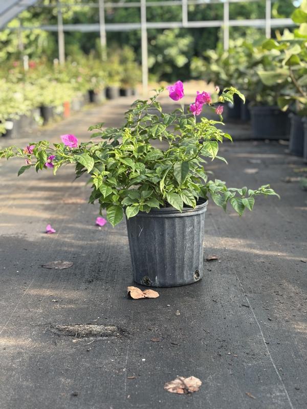 Bougainvillea 'Elizabeth Angus' (Bougainvillea 'Elizabeth Angus') is a vibrant climbing vine known for its deep magenta bracts that bloom prolifically throughout the warmer months. Its bold color and vigorous growth habit make it ideal for covering fences, arbors, or trellises, adding tropical flair to any Florida landscape.