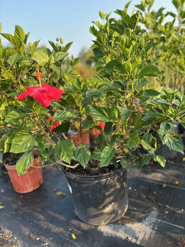 Painted Lady Hibiscus (Hibiscus rosa-sinensis 'Painted Lady') is a vibrant tropical shrub known for its large, bi-colored flowers with striking red centers and pink edges, along with glossy green foliage. This eye-catching plant is perfect for adding a splash of color to gardens, borders, and containers, and it blooms prolifically throughout the warmer months.