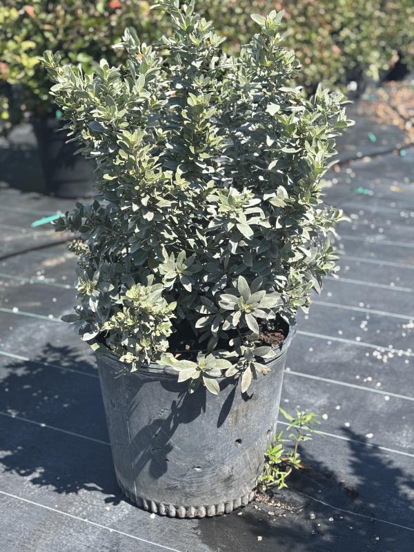Silver Buttonwood (Conocarpus erectus var. sericeus) is a small to medium-sized, evergreen shrub or tree known for its silvery, leathery leaves that provide a striking contrast in coastal landscapes. This salt-tolerant plant is well-suited for coastal environments and can tolerate both full sun and partial shade, making it a versatile addition to Florida gardens. Its compact growth and attractive foliage make it ideal for hedges, windbreaks, and shoreline plantings.