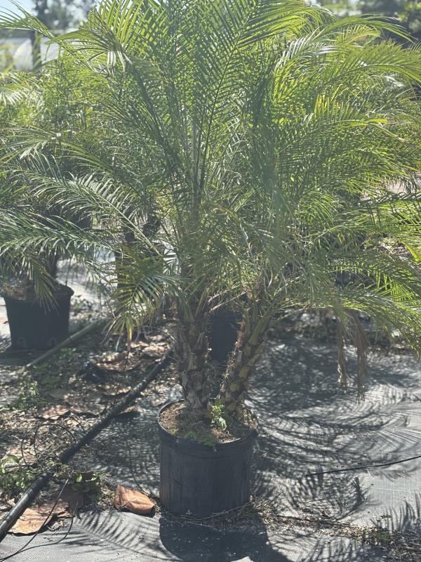 Pygmy Date Palm (Phoenix roebelenii) is a compact, slow-growing palm with graceful, arching fronds and a slender trunk. Its elegant appearance makes it a popular choice for tropical landscapes, patios, or as a specimen plant in containers. This palm is also known for being relatively low maintenance and tolerant of some shade.