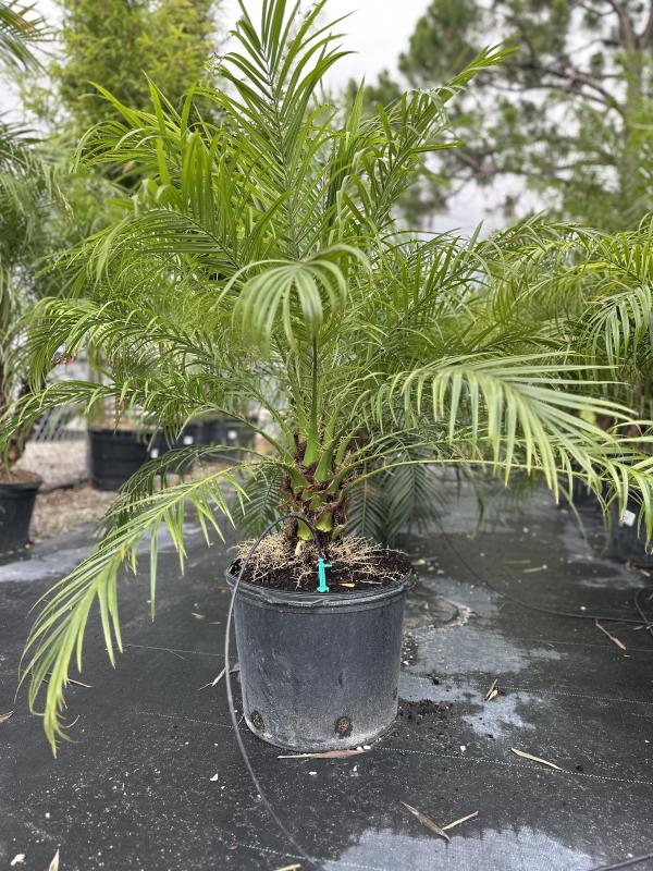 Pygmy Date Palm (Phoenix roebelenii) is a compact, slow-growing palm with graceful, arching fronds and a slender trunk. Its elegant appearance makes it a popular choice for tropical landscapes, patios, or as a specimen plant in containers. This palm is also known for being relatively low maintenance and tolerant of some shade.