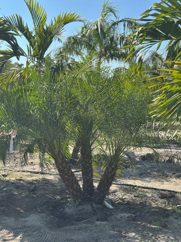Pygmy Date Palm (Phoenix roebelenii) is a compact, slow-growing palm with graceful, arching fronds and a slender trunk. Its elegant appearance makes it a popular choice for tropical landscapes, patios, or as a specimen plant in containers. This palm is also known for being relatively low maintenance and tolerant of some shade.