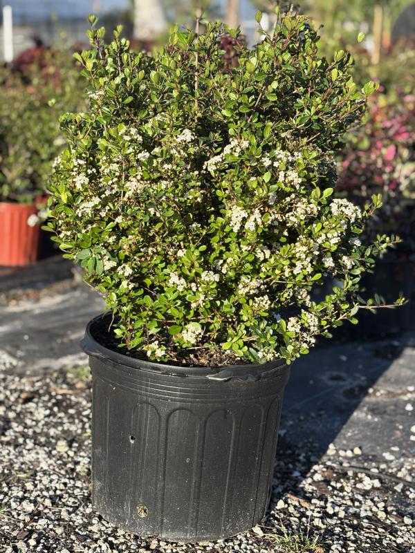 Viburnum Mrs. Schiller's Delight (Viburnum odoratissimum 'Mrs. Schiller's Delight') is an attractive evergreen shrub known for its glossy, dark green, fragrant foliage. The plant has a compact, rounded form, making it ideal for use as a hedge, border, or foundation plant. It also offers year-round interest with its foliage and blooms.