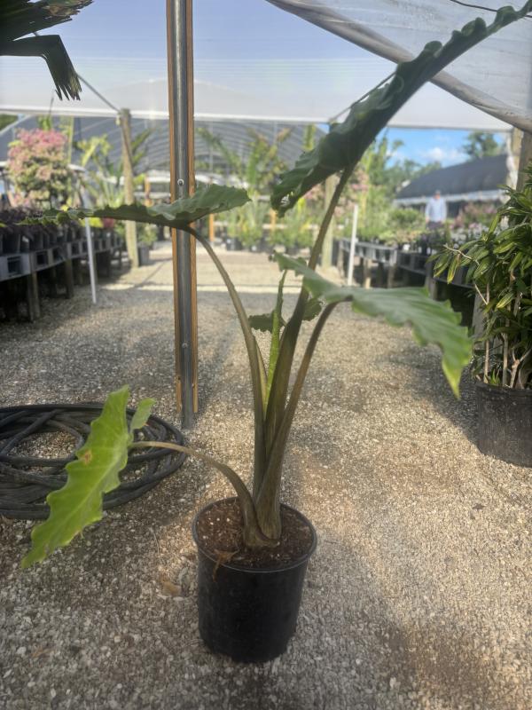 Alocasia (Alocasia spp.), commonly known as elephant ear or African mask plant, is a striking tropical plant celebrated for its dramatic foliage. Its large, heart- or arrow-shaped leaves, often with prominent veins, come in a variety of colors, including deep green, silver, and purple hues. This versatile plant adds an exotic feel to landscapes or as a statement piece in containers, thriving in warm and humid environments.