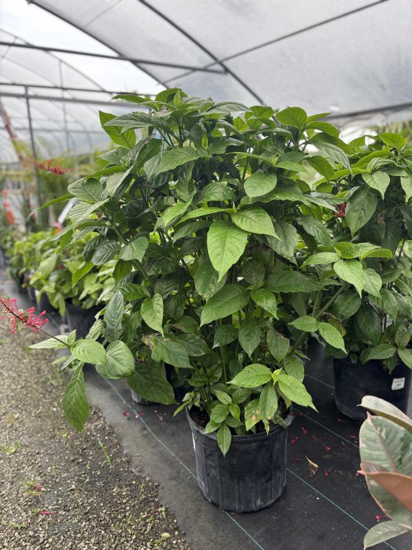 Red Firespike (Odontonema strictum) is a striking, tropical plant known for its vibrant, red tubular flowers that attract hummingbirds and butterflies. With its upright growth habit and lush green foliage, it adds a bold splash of color to gardens, blooming most profusely during the warmer months.
