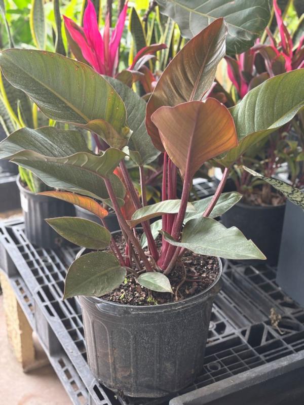 Philodendron Congo Red (Philodendron ‘Congo Red’) is a vibrant, self-heading philodendron with broad, glossy leaves that emerge red and mature into deep green with burgundy undertones. This low-maintenance tropical plant thrives in warm, humid conditions and is ideal for indoor or shaded outdoor spaces. It prefers well-draining soil and regular watering, allowing the soil to dry slightly between waterings.