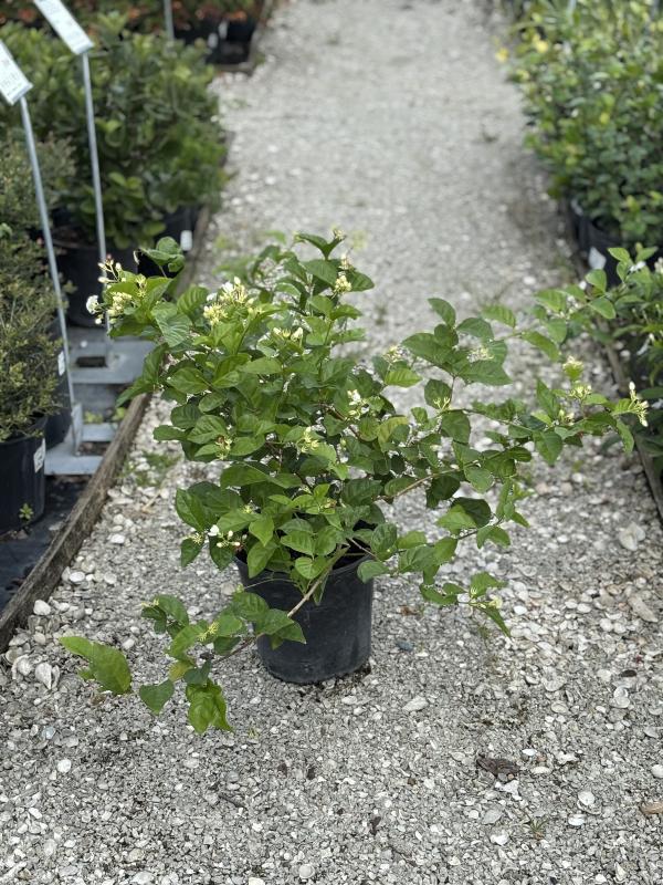 Jasmine Sambac(Jasminum sambac) is a tropical, evergreen shrub known for its highly fragrant, white flowers that bloom repeatedly throughout the warm months. Often associated with perfumes and traditional leis, its glossy green leaves and compact form make it ideal for containers, hedges, or as a specimen in sunny garden spots.