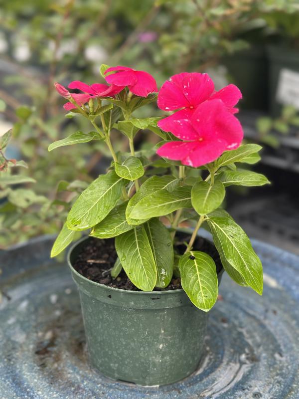 Vinca 'Blockbuster' (Catharanthus roseus) is a robust annual flowering plant known for its large, showy blooms in a variety of colors, providing dramatic color to gardens and containers. It is well-suited for Florida's sunny, hot climate, offering continuous, vibrant flowers from spring through fall, and is favored for its heat tolerance, drought resistance, and low-maintenance care.
